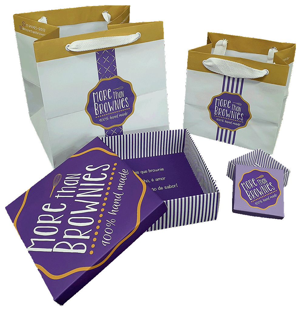 Sacola para docerias impressa em papel offset com fundo largo para acondicionamento de caixas para doces.