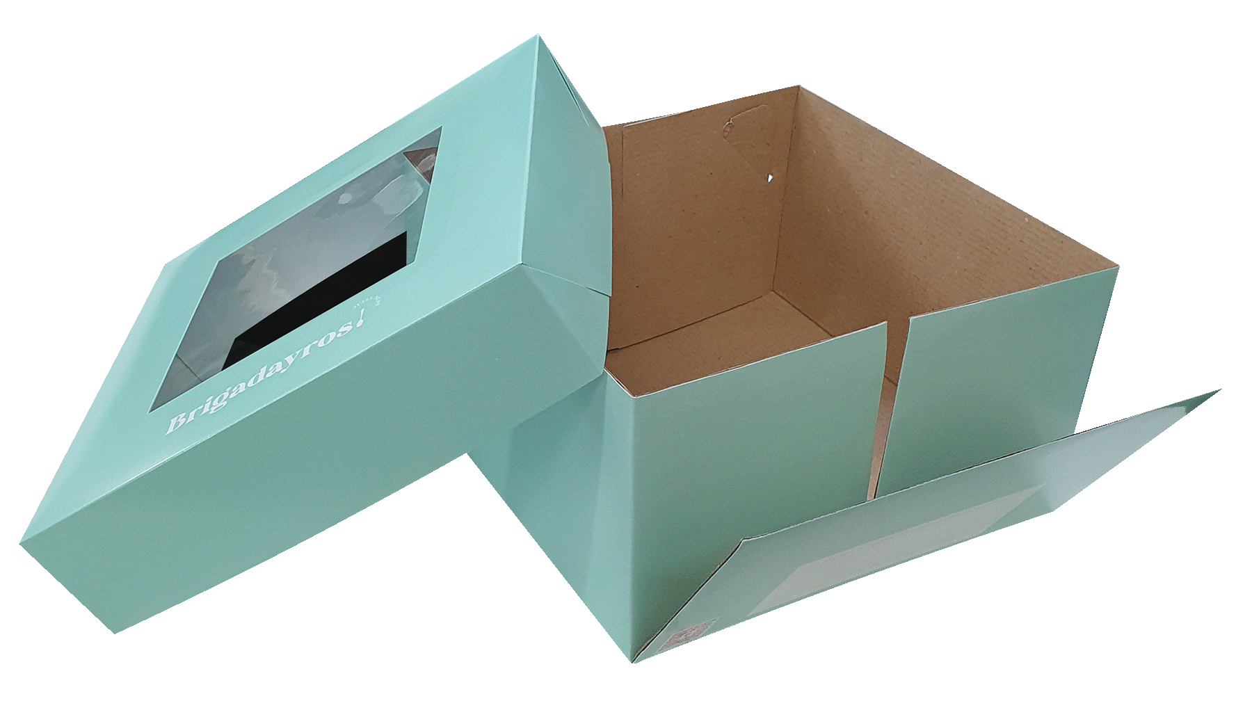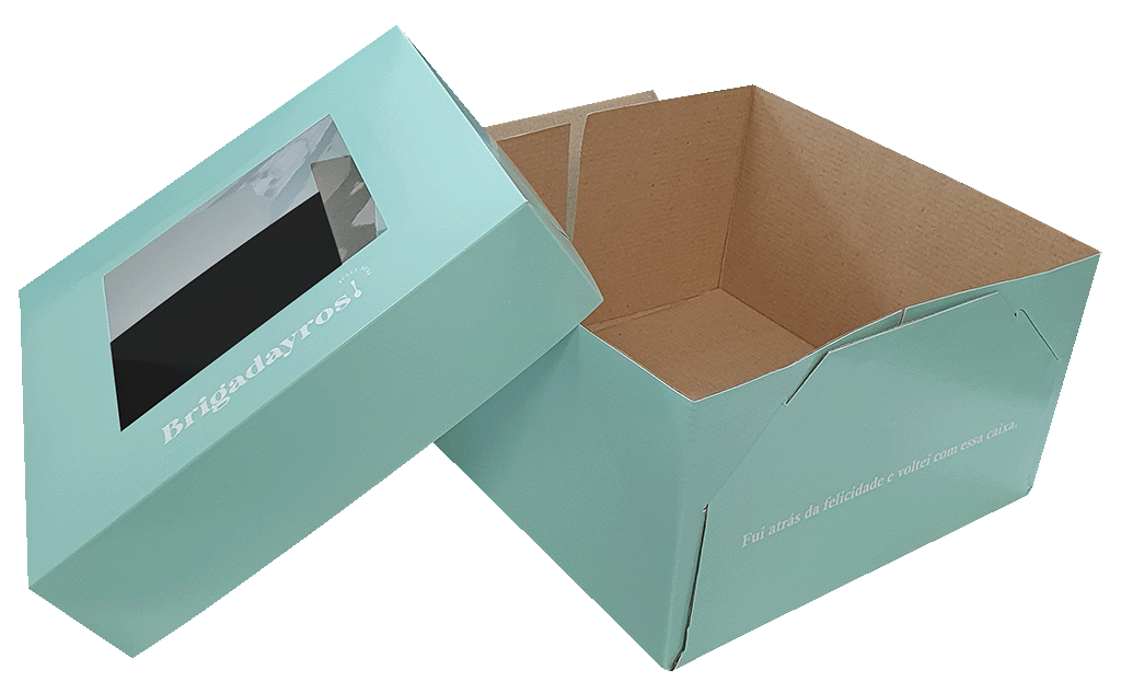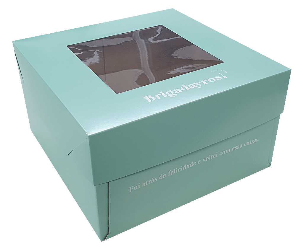 A aplicação da janela de PVC cristal na tampa permite a vizualização do bolo.