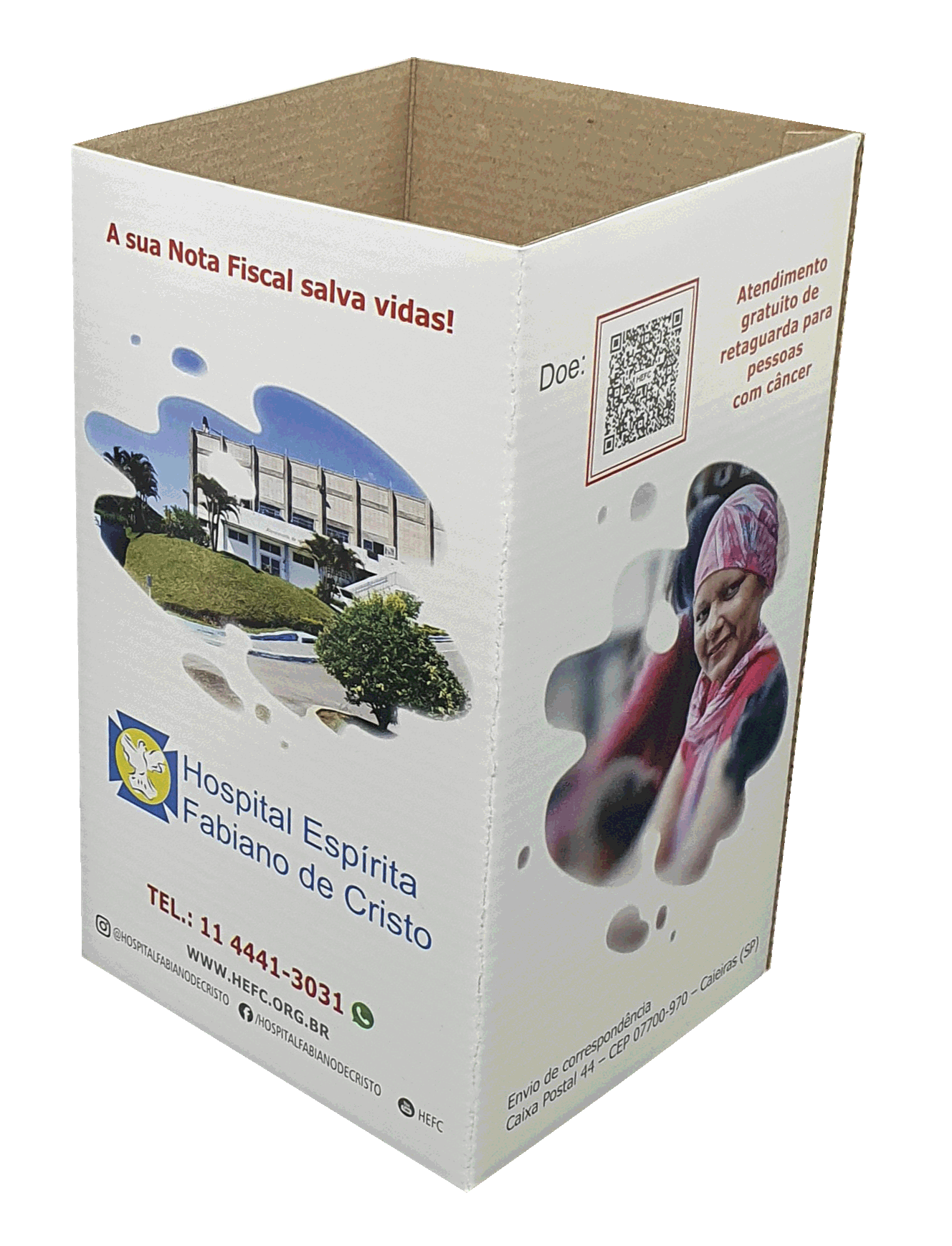Urnas para coleta de cupom fiscal. Confeccionadas em papel cartão com ou sem acoplamento em papelão micro-ondulado deixando a urna muito resistente.